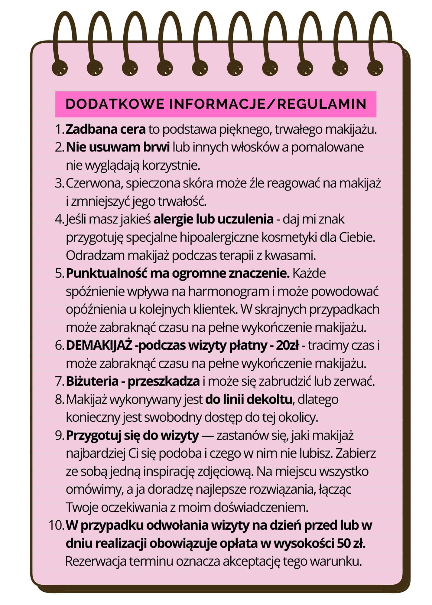 - Ekspercka wiedza: Szkolę się u najlepszych i na bieżąco testuję rynkowe nowości. Dzięki temu oferuję Ci makijaż, który jest miksem najnowszych trendów i niezawodnej trwałości.